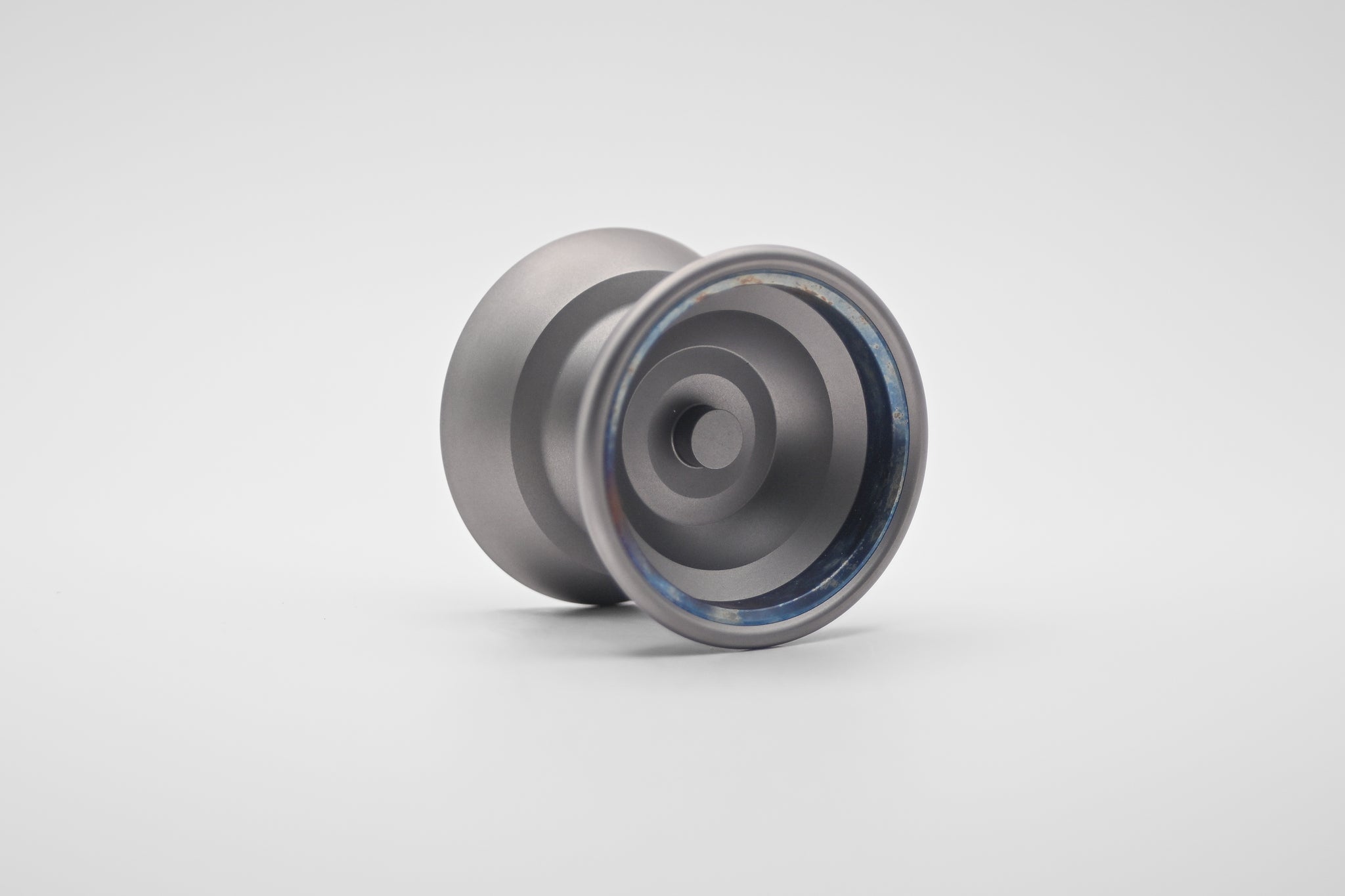 Ti-6061 Evora Torched (Unreleased). Torched rings, with a 6061 body. Didn't release this version of the yoyo due to the work it was to install rings and torch each one. From around 2016 - 2017. 1 of 2.